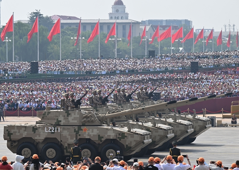 9月3日,紀念中國人民抗日戰(zhàn)爭暨世界反法西斯戰(zhàn)爭勝利80周年大會在北京隆重舉行。這是陸上無人作戰(zhàn)方隊接受檢閱。