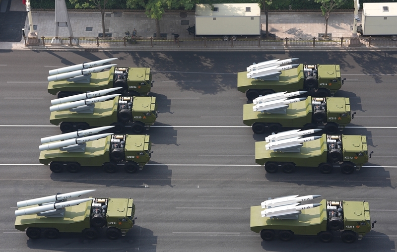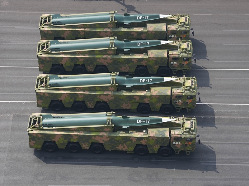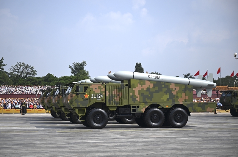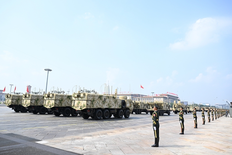 9月3日,紀念中國人民抗日戰(zhàn)爭暨世界反法西斯戰(zhàn)爭勝利80周年大會在北京隆重舉行。這是高超聲速導(dǎo)彈方隊接受檢閱。