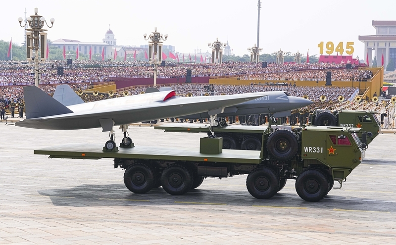 9月3日,紀念中國人民抗日戰(zhàn)爭暨世界反法西斯戰(zhàn)爭勝利80周年大會在北京隆重舉行。這是空中無人作戰(zhàn)方隊接受檢閱。