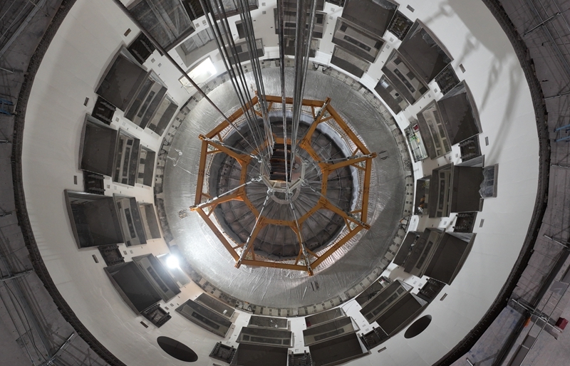 這是10月1日在緊湊型聚變能實驗裝置(BEST)建設(shè)現(xiàn)場拍攝的成功落位安裝的杜瓦底座(無人機照片)。