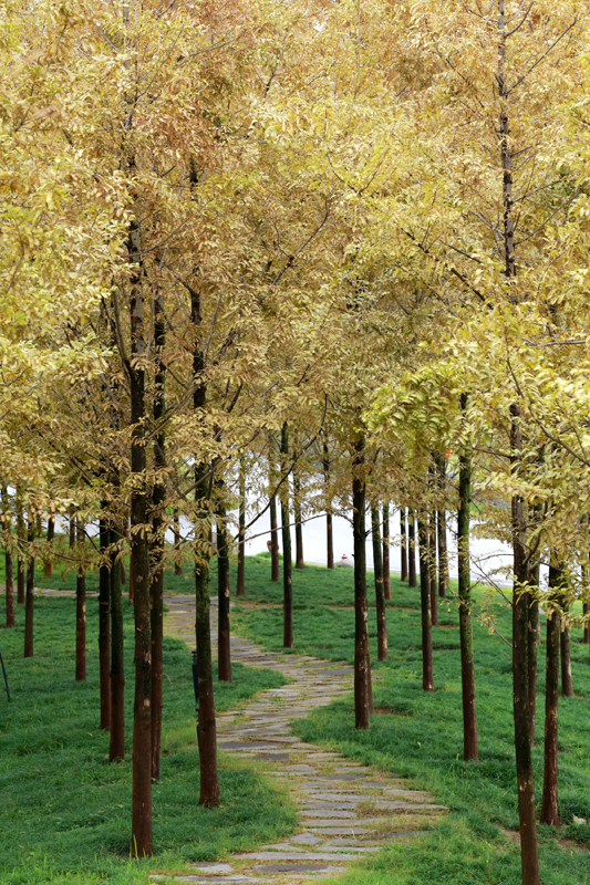 10月17日,游人在南京明孝陵景區(qū)石象路賞景游玩(無(wú)人機(jī)照片)。