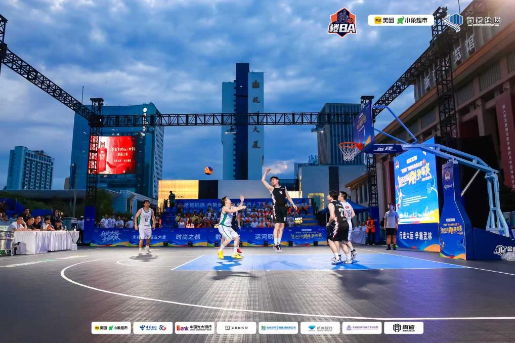 夜幕降臨,位于杭州鬧市區(qū)的武林廣場燈火璀璨、人聲鼎沸。每逢周五至周日,杭州市商務(wù)社區(qū)街頭籃球武林爭霸賽都會在此地準(zhǔn)時上演。這項以樓宇為單位的街頭籃球爭霸賽,融合了寫字樓的現(xiàn)代氣質(zhì)與街頭籃球的親民活力,被市民戲稱為“樓BA”。