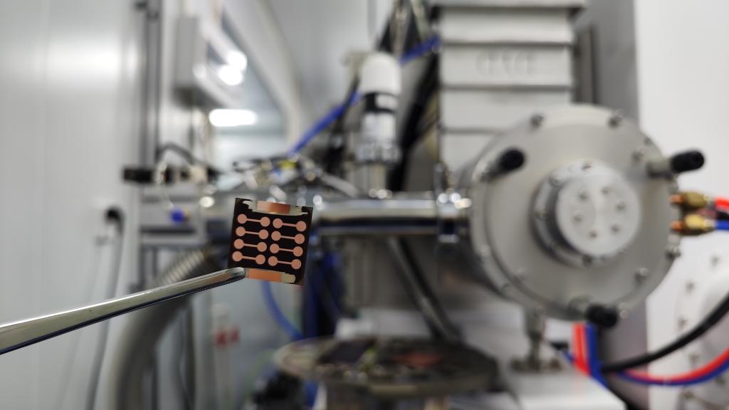 這是南京大學(xué)等單位研制的光電轉(zhuǎn)化效率30.1%全鈣鈦礦疊層光伏電池。(受訪者供圖)