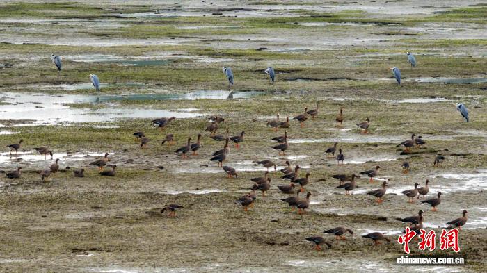 截至11月初,鄱陽(yáng)湖湖口水域已發(fā)現(xiàn)數(shù)百只白額雁、小白額雁、豆雁等雁類候鳥的蹤跡,相比去年候鳥抵達(dá)時(shí)間推遲了近半個(gè)月。徐會(huì)剛 攝