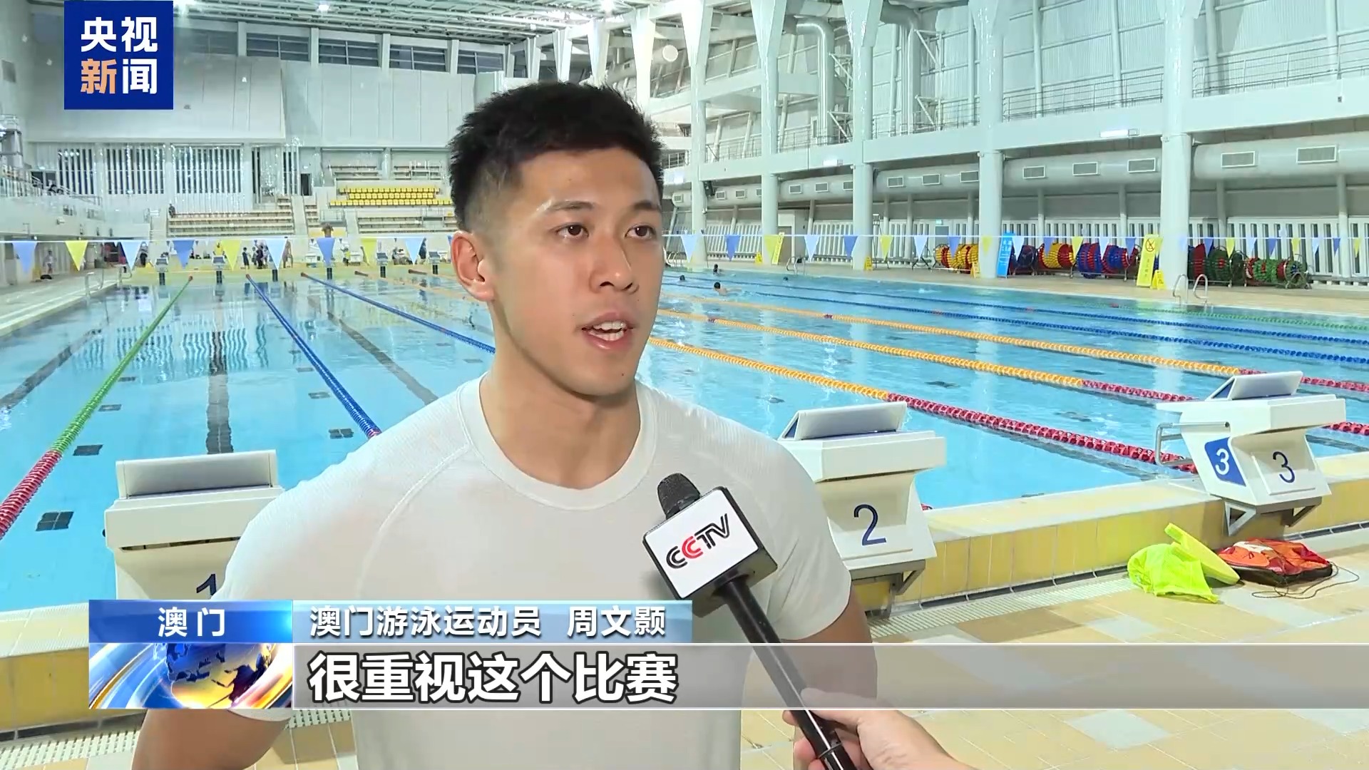 澳門游泳運(yùn)動(dòng)員 周文顥:我把全運(yùn)會(huì)當(dāng)作是今年最重要的比賽,很重視這個(gè)比賽,然后比賽水平也很高。