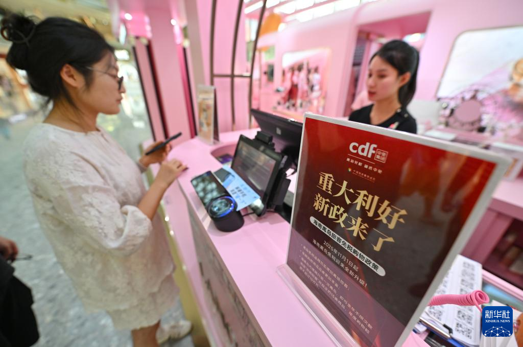 11月9日,外國顧客在三亞國際免稅城選購商品。新政將適用人群擴至離境旅客。