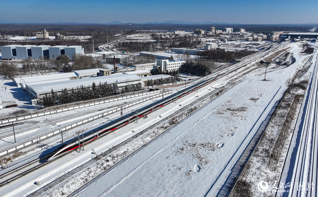 一列復(fù)興號(hào)智能動(dòng)車組列車從長(zhǎng)白山西站駛出。