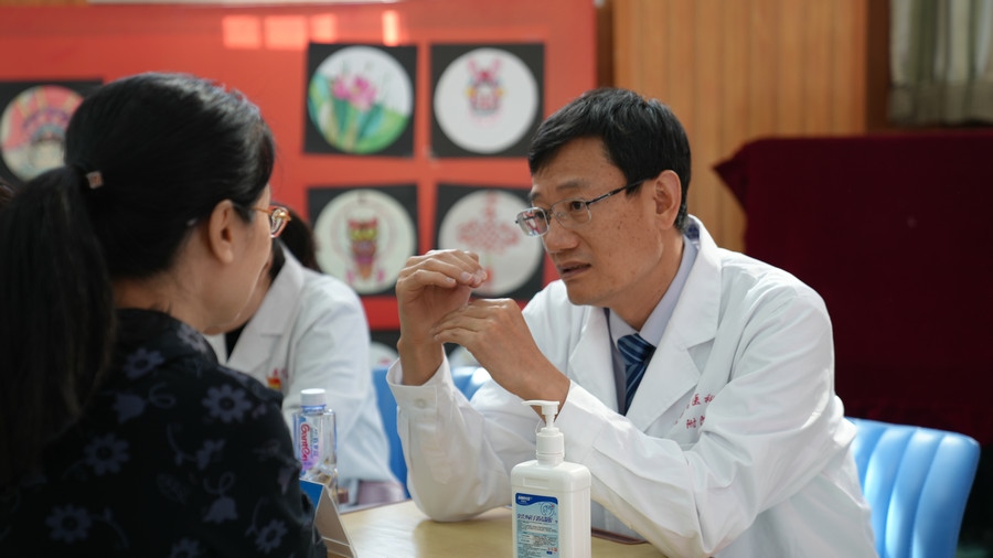 義診現(xiàn)場,前來咨詢就診的女教職工朋友有序候診,其中不少老師拿著體檢報告和既往病歷來到專家臺前進行詳細咨詢。此次義診,內(nèi)蒙古醫(yī)科大學附屬醫(yī)院醫(yī)療烏蘭牧騎派出了神經(jīng)內(nèi)科、消化內(nèi)科、心血管內(nèi)科、骨科、甲乳外科、泌尿外科、胸外科、超聲科、中醫(yī)科、婦產(chǎn)生殖醫(yī)學科、康復(fù)醫(yī)學科等11個專業(yè)的19位專家及醫(yī)護骨干,為廣大園丁提供查體、疾病咨詢和健康科普服務(wù)及測量血壓、把脈問診、超聲檢查、心電圖檢查、早期胃癌篩查、早期肝癌篩查等檢測項目。附院專家耐心細致地詢問病史、解答疑問,并根據(jù)不同的病癥和個體差異給予個性化的診療建議。同時對職業(yè)女性常見的消化系統(tǒng)疾病、甲狀腺疾病、乳腺疾病、婦科疾病、腰椎間盤突出等疾病開展了專業(yè)、細致、通俗的健康科普。