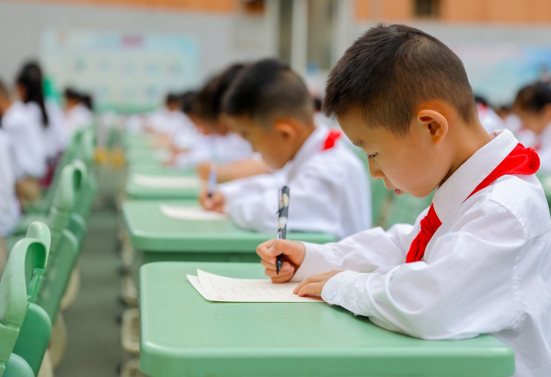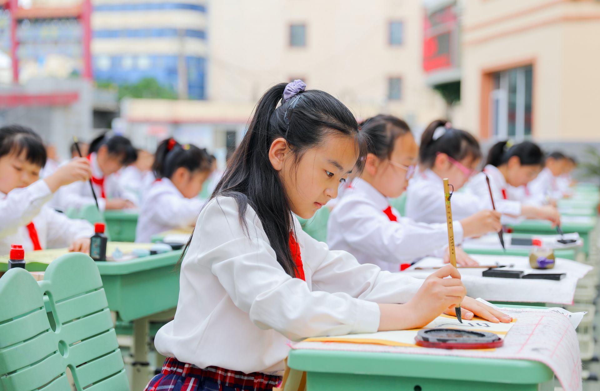 6月13日,呼和浩特市玉泉區(qū)恒昌店巷小學(xué)的學(xué)生們正在參加書法比賽。當(dāng)日,該?!靶@書法文化節(jié)”漢字書寫大賽開賽,200多名學(xué)生在硬筆和軟筆項目上展開比拼。活動旨在提高孩子們漢字書寫水平,弘揚中華民族優(yōu)秀傳統(tǒng)文化。
