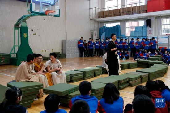 3月29日,中學(xué)生在展示根據(jù)數(shù)學(xué)歷史故事創(chuàng)編的話劇。