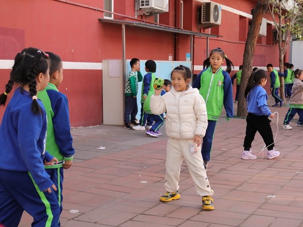 “咱們孩子年齡比較小,自理能力和安全意識薄弱,我們會耐心引導孩子們自主選擇跳繩、投沙包、丟手絹等體育項目。”二年級一班班主任蔡丹陽介紹,“現(xiàn)在體育活動有體質(zhì)健康監(jiān)測,跳繩是其中的一項,可以利用課間讓孩子們多跳一跳。有跳繩較慢的孩子,我們也會多表揚、多鼓勵,讓孩子們有個更好的體質(zhì)、更大的進步。”