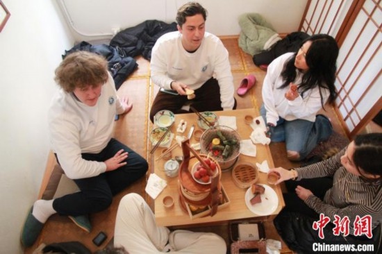 1月8日,來自美國加利福尼亞州州立大學(xué)長灘分校的十余名學(xué)生來到山東青島,體驗(yàn)圍爐煮茶感受中國傳統(tǒng)文化。
