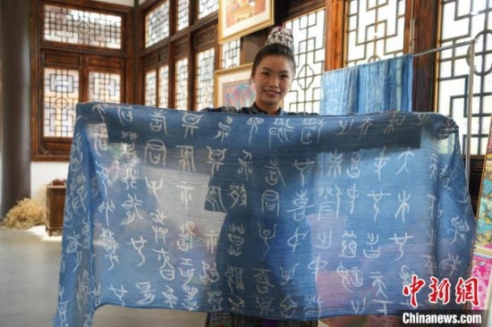 貴州織金苗族蠟染2021年6月入選國(guó)務(wù)院公布第五批國(guó)家級(jí)非物質(zhì)文化遺產(chǎn)代表性項(xiàng)目名錄?!?5后”苗族女孩王秋雨大學(xué)畢業(yè)后回到織金,成為一名織金苗族蠟染推廣者。她不僅使用傳統(tǒng)小臘刀,還使用大臘刀和毛筆,以蜂蠟為墨在絲巾、衣服、箱包上繪制小篆、甲骨文、山水等文字與圖案,這些蠟染產(chǎn)品深受消費(fèi)者喜愛(ài)。圖為6月19日,王秋雨在織金縣平遠(yuǎn)古鎮(zhèn)的依文織金數(shù)字化展廳制作蠟染。周燕玲 攝