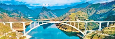 無支架施工技術的發(fā)展再加上材料、裝備的進步,使中國拱橋建造數(shù)量迅速增加,跨徑獲得重大突破。特別是最近30年,伴隨著大量建設高速公路、高速鐵路帶來的需求,中國建成了一系列世界最大跨徑拱橋,其中有跨徑146米的山西丹河石拱橋,跨徑550米的上海盧浦鋼箱拱橋,跨徑552米的重慶朝天門鋼桁拱橋,跨徑445米的滬昆高鐵北盤江混凝土拱橋,跨徑430米的拉林鐵路藏木鋼管混凝土拱橋,跨徑560米的廣西平南鋼管混凝土拱橋,跨徑600米的廣西天峨龍灘混凝土拱橋。這些標志著中國各類拱橋跨徑均列世界第一,躋身橋梁強國之列。