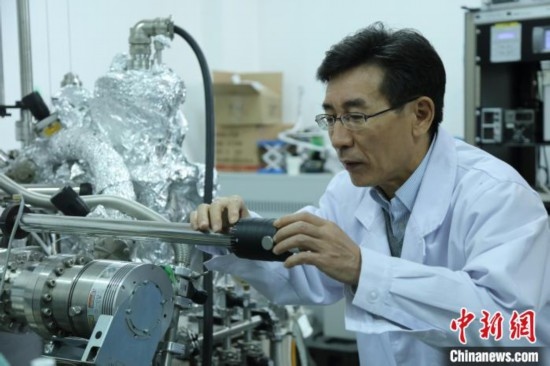 薛其坤正在實(shí)驗(yàn)室里調(diào)試儀器設(shè)備。 (受訪者供圖)