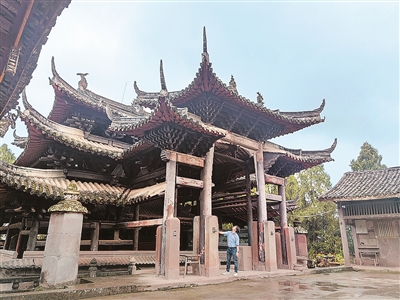 “古貓陪你去看博物館”創(chuàng)始人湯詩偉在四川省安岳縣考察全國重點文物保護單位木門寺。