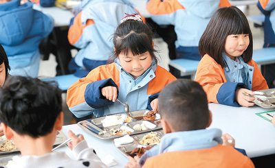 2月18日,浙江省湖州市德清縣春暉小學(xué)食堂內(nèi),小學(xué)生們在享用營養(yǎng)午餐。新學(xué)期開始,德清縣全面推廣由浙江大學(xué)注冊營養(yǎng)師團(tuán)隊(duì)定制的營養(yǎng)餐,確保學(xué)生吃得安心、吃得健康、吃得科學(xué)。