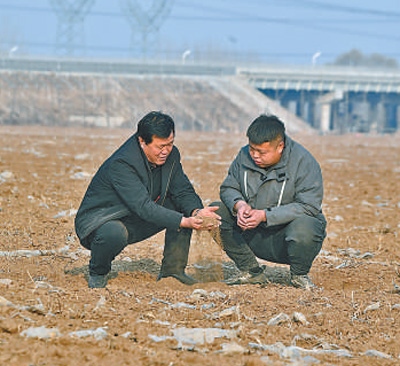 河北省永清縣劉街鄉(xiāng)農戶在休耕地塊上查看土壤情況。 劉欣羽攝