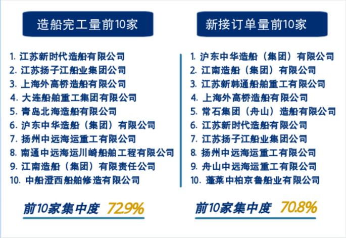 此外,今年一季度我國(guó)造船完工量前10家集中度為72.9%,新接訂單量前10家集中度為70.8%。