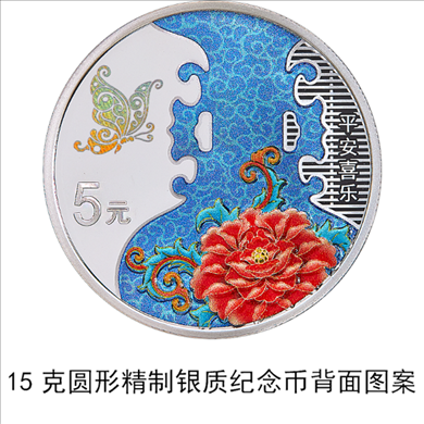 15克圓形銀質紀念幣為精制幣,含純銀15克,直徑33毫米,面額5元,成色99.9%,最大發(fā)行量40000枚。
