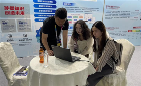 本次博覽會期間,萬方數(shù)據(jù)工作人員現(xiàn)場為用戶進(jìn)行產(chǎn)品演示,幫助用戶了解產(chǎn)品功能和平臺操作、解答相關(guān)問題。來自高校、企業(yè)、科研院所等各類型單位的用戶來到展位同工作人員互動交流、洽談合作。