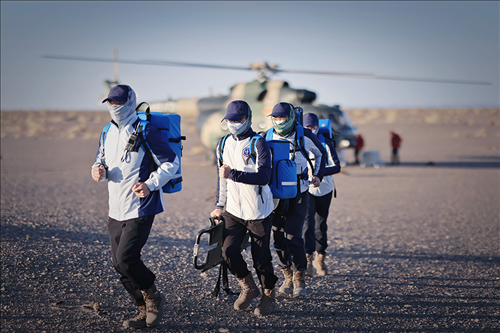 醫(yī)學(xué)急救“白金10分鐘、黃金1小時(shí)”,針對可能出現(xiàn)的飛船返回偏離落點(diǎn),落在沙漠、山地、湖泊,搜救直升機(jī)無法降落,車輛無法進(jìn)入的情況,為快速到達(dá)著陸地點(diǎn),醫(yī)療救護(hù)隊(duì)員每天隨身攜帶艙前急救設(shè)備堅(jiān)持訓(xùn)練六七個(gè)小時(shí),負(fù)重在沙漠、山地中奔跑,爭取最短時(shí)間展開緊急救治。夏日戈壁驕陽似火,風(fēng)沙彌漫,訓(xùn)練一天下來,隊(duì)員們耳朵眼里都是沙土,臉上脖子全是泥印,一個(gè)個(gè)都成了泥人。茫茫大草原記錄了神舟載人飛行任務(wù)醫(yī)療隊(duì)員們一次次醫(yī)療救護(hù)空地協(xié)同演練、全域協(xié)同演練的身影……