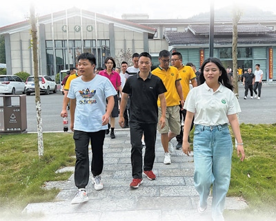 湖北省來鳳縣舊司鎮(zhèn),班主任(前排右一)帶領(lǐng)學(xué)員參觀全國鄉(xiāng)村治理示范村新街村。田 根攝(人民視覺)