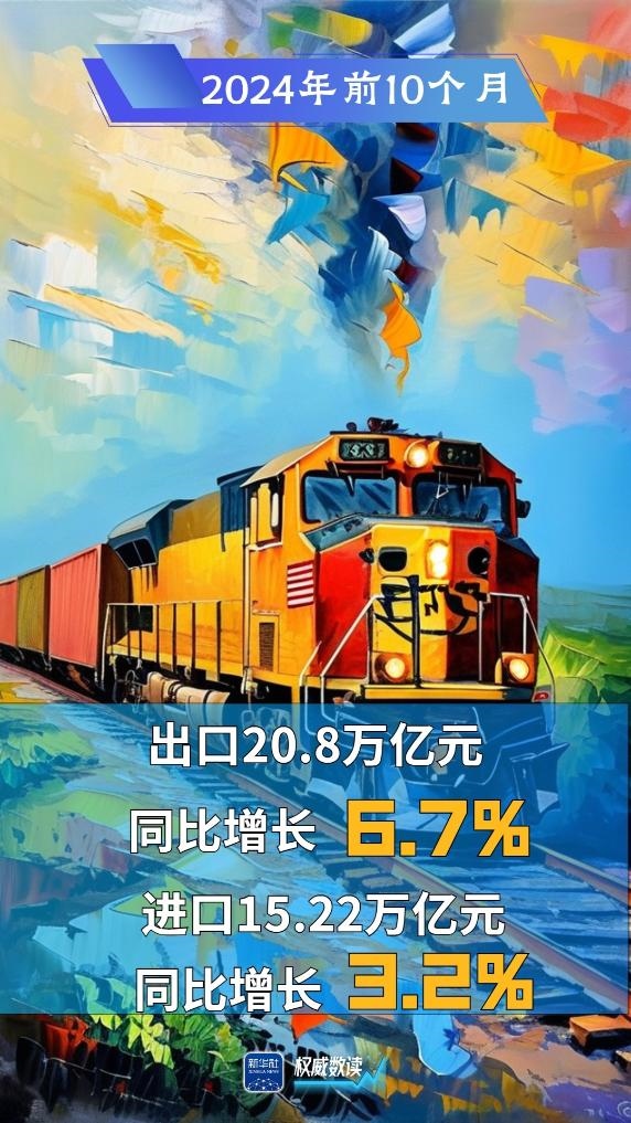 海關(guān)總署7日發(fā)布數(shù)據(jù):2024年前10個(gè)月,我國(guó)貨物貿(mào)易進(jìn)出口總值36.02萬億元人民幣,同比增長(zhǎng)5.2%。其中,出口20.8萬億元,同比增長(zhǎng)6.7%;進(jìn)口15.22萬億元,同比增長(zhǎng)3.2%。海關(guān)總署統(tǒng)計(jì)分析司司長(zhǎng)呂大良表示,前10個(gè)月我國(guó)外貿(mào)平穩(wěn)增長(zhǎng),規(guī)模持續(xù)擴(kuò)大、結(jié)構(gòu)不斷優(yōu)化,全年外貿(mào)質(zhì)升量穩(wěn)目標(biāo)可望實(shí)現(xiàn)。
