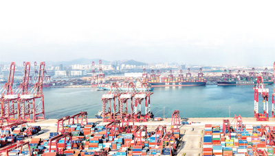 山東青島,青島港外貿集裝箱碼頭一派繁忙景象。