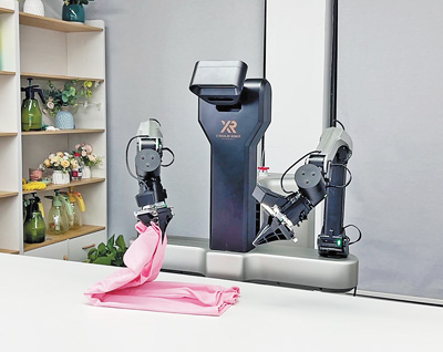 在深圳自變量機器人科技公司,具身智能通用大模型為機器人裝上了聰明的“大腦”,成功解決了這一難題。只見一臺雙臂機器人動作靈活,實時判斷衣物形變,智能調(diào)整力度,不一會兒就把散落的衣服折疊整齊。