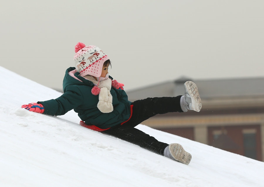 小朋友在如意河新華大街南側冰雪場體驗滑雪樂趣 北疆新聞網、北疆新聞客戶端記者 張楊攝影