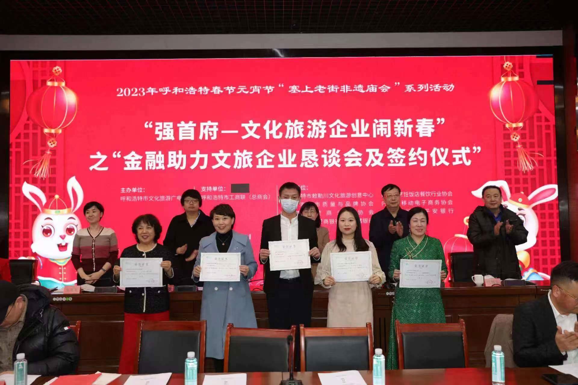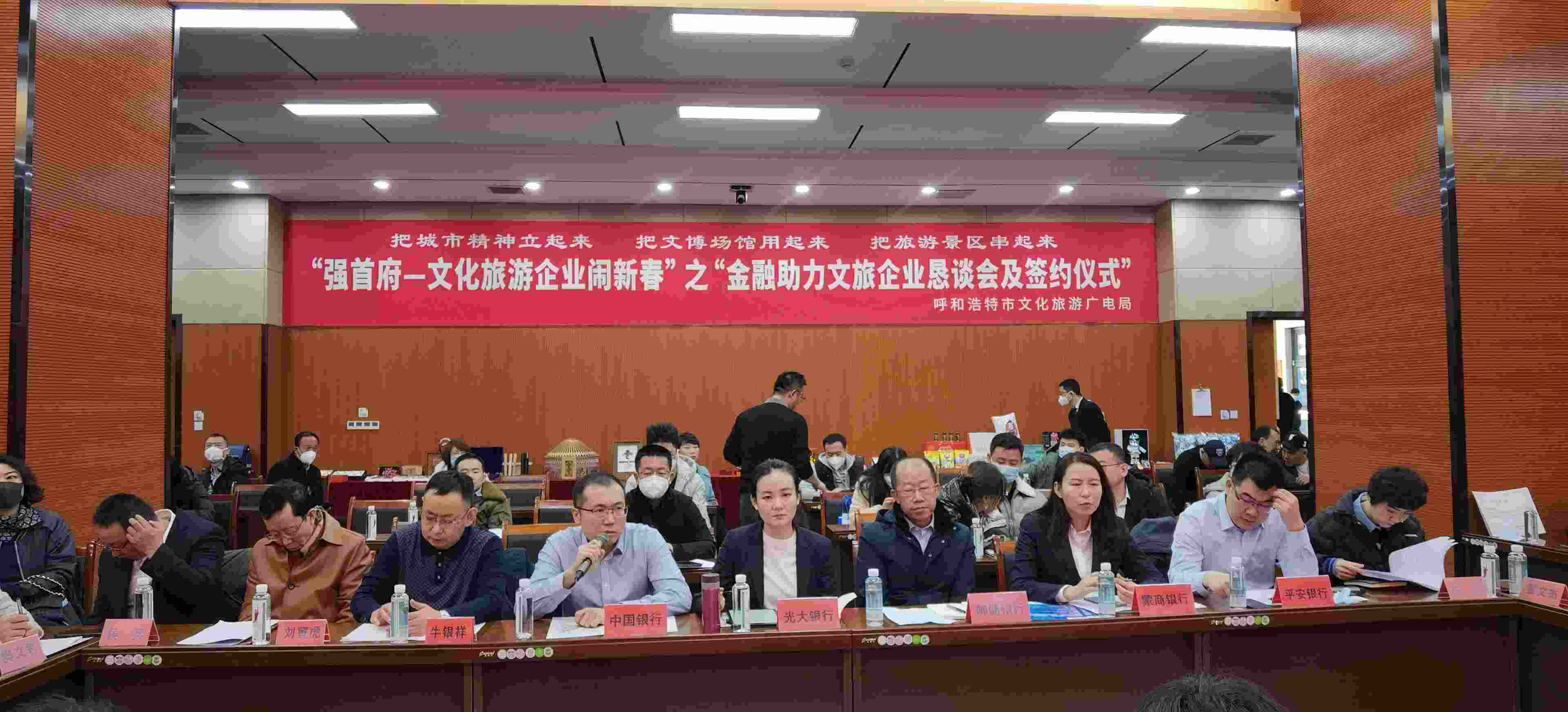 2月4日,呼和浩特市文化旅游廣電局與呼市工商聯(lián)(總商會)舉辦“強(qiáng)首府—文化旅游企業(yè)鬧新春”之“金融助力文旅企業(yè)懇談會及簽約儀式”,共同為首府提振市場信心、促進(jìn)文化旅游產(chǎn)業(yè)高質(zhì)量發(fā)展、促進(jìn)首府“六大產(chǎn)業(yè)集群”作出貢獻(xiàn)。