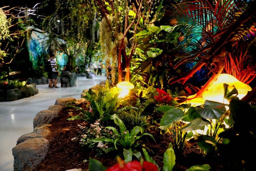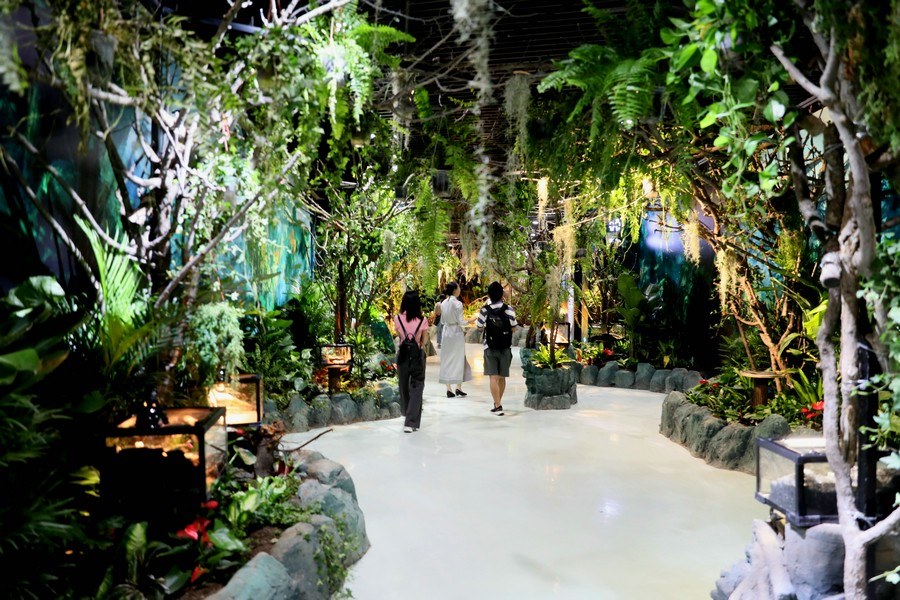 此次展覽主要以實(shí)景植物造景、活體動物和圖文展板相結(jié)合的方式進(jìn)行展示。其中活體動物有30多種約300只,包括鸚鵡、守宮、蛇、蜥蜴等鳥類和爬行類動物。