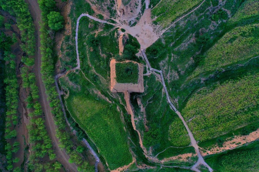 8月16日,從空中視角,俯瞰山西大同天鎮(zhèn)李二口長城。