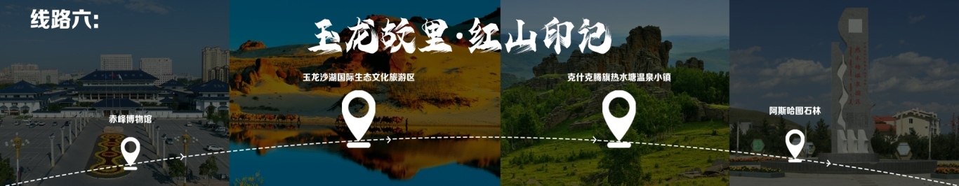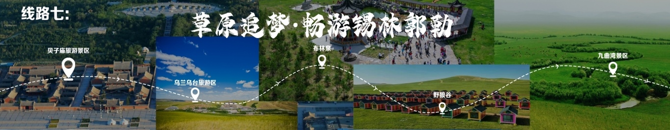 “一城看北疆?大美青城”四日游 行程由呼和浩特出發(fā),至哈達(dá)門高山草原旅游區(qū),至莫尼山非遺小鎮(zhèn),至大召歷史文化旅游區(qū),再至昭君博物院,再至奧威馬文化生態(tài)旅游區(qū),再至蒙草草博園,再至老牛坡紅色文化旅游區(qū),終點(diǎn)為老牛灣黃河大峽谷旅游區(qū)。 線路二 “醉美草原·呼倫貝爾”五日游 線路行程由海拉爾出發(fā),至呼倫貝爾大草原·莫爾格勒河景區(qū),至烏蘭山,至額爾古納濕地,再至白樺林,再至呼和諾爾旅游區(qū),終點(diǎn)為呼倫貝爾古城旅游休閑街區(qū)。 線路三 “邊境風(fēng)情·環(huán)興安嶺自駕之旅”四日游 線路行程由烏蘭浩特出發(fā),至翰嘎利湖休閑旅游度假區(qū)出發(fā),再至紅花爾基樟子松林國(guó)家森林旅游區(qū),再至諾干湖旅游度假區(qū),再至扎賚諾爾猛犸旅游區(qū),終點(diǎn)為滿洲里市中俄邊境旅游區(qū)。 線路四 “森林溫泉·阿爾山度假”三日游 線路行程由阿爾山出發(fā),至鹿角灣溫泉度假營(yíng)地,至世界地質(zhì)公園博物館,至中國(guó)溫泉博物館,再至氧心森林浴道,再至圣泉廣場(chǎng),再至青坊酒吧,再至阿爾山國(guó)家森林公園,終點(diǎn)為白狼峰景區(qū)。 線路五 “勝境探秘·科爾沁草原”三日游 線路行程由通遼出發(fā),至科爾沁左翼中旗探訪哈民考古遺址公園,至珠日河草原旅游區(qū),再至科左后旗大青溝旅游區(qū),終點(diǎn)為庫(kù)倫旗銀沙灣旅游區(qū)。 線路六 “玉龍故里·紅山印記”三日游 線路行程由赤峰出發(fā),至赤峰博物館,至玉龍沙湖國(guó)際生態(tài)文化旅游區(qū),再至克什克騰旗熱水塘溫泉小鎮(zhèn),終點(diǎn)為阿斯哈圖石林。 線路七 “草原追夢(mèng)·暢游錫林郭勒”三日游 線路行程由錫林浩特出發(fā),至貝子廟旅游景區(qū),至烏蘭烏臺(tái)旅游區(qū),至布林泉,再至野狼谷,終點(diǎn)為九曲灣景區(qū)。 線路八 “北京向西一步·草原避暑之旅”四日游 線路行程由北京出發(fā),至烏蘭哈達(dá)火山,至二連浩特國(guó)家地質(zhì)公園,至輝騰錫勒草原,至林胡古塞,再至集寧戰(zhàn)役紀(jì)念館,再至烏蘭察布之夜,終點(diǎn)為蘇木山旅游區(qū)。 線路九 “暢游西部·沿黃自駕之旅”五日游 線路行程由鄂爾多斯出發(fā),至鄂爾多斯野生動(dòng)物園,至萬家惠旅游區(qū),至響沙灣旅游區(qū)。到達(dá)包頭,至春坤山景區(qū),再至包頭金街,至黃河國(guó)家濕地公園。到達(dá)巴彥淖爾,至烏梁素海,再至黃河灣步行街,再至三盛公國(guó)家水利風(fēng)景區(qū),終點(diǎn)為烏海湖度假區(qū)。 線路十 “沙漠傳奇·巴丹吉林沙漠探險(xiǎn)之旅”四日游 線路行程由阿拉善出發(fā),至參觀越野e族阿拉善夢(mèng)想沙漠汽車航空樂園景區(qū),至定遠(yuǎn)營(yíng)古城旅游區(qū),至巴丹吉林沙漠景區(qū),再至額濟(jì)納旗東風(fēng)航天城旅游區(qū),再至居延海景區(qū),終點(diǎn)為胡楊林旅游區(qū)。