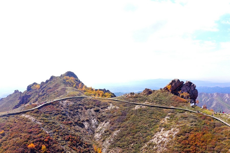 9月26日,游客在固陽(yáng)馬鞍山登山賞景