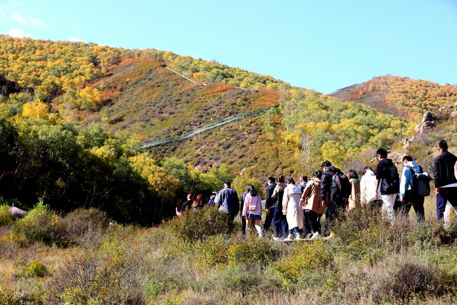 9月26日,游客在一片金黃的固陽(yáng)馬鞍山游玩