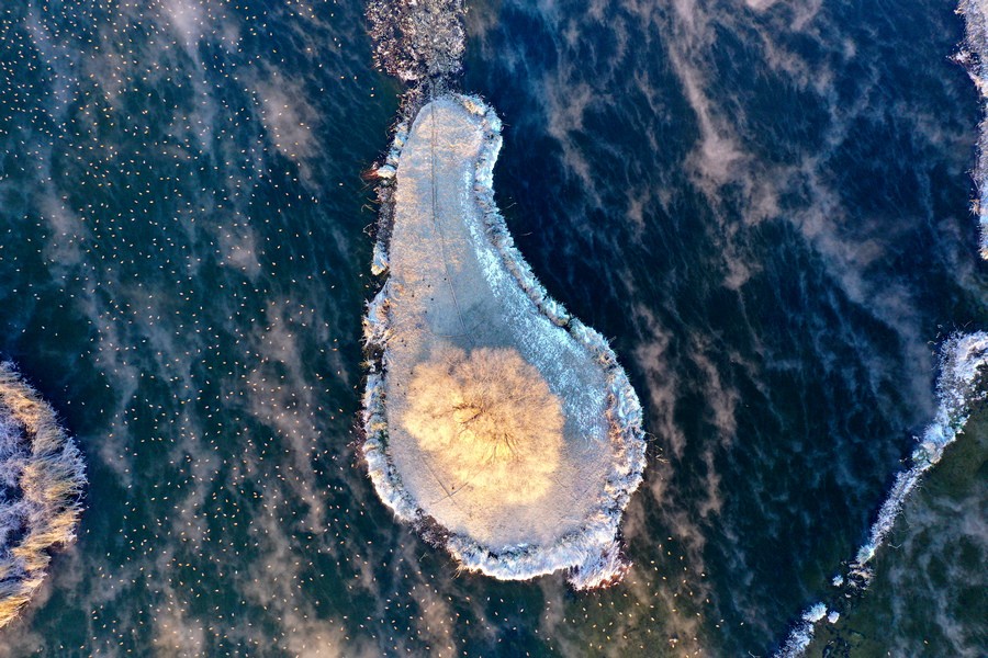 12月15日,上萬只赤麻鴨在塞外“千島湖”棲息