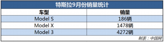 從單月成績來看,9月份,隨著特斯拉Model 3進口量的增加,特斯拉在該月進口數(shù)量約為0.43萬輛新車,同比大幅增長近287%。伴隨進口量的增加,特斯拉在國內的銷量也有突出表現(xiàn),根據(jù)乘聯(lián)會9月份數(shù)據(jù)統(tǒng)計,特斯拉Model S的銷量為186輛;Model X的銷量為1478輛;Model 3的銷量為4272輛。詳情見下表: