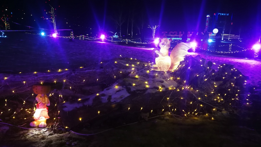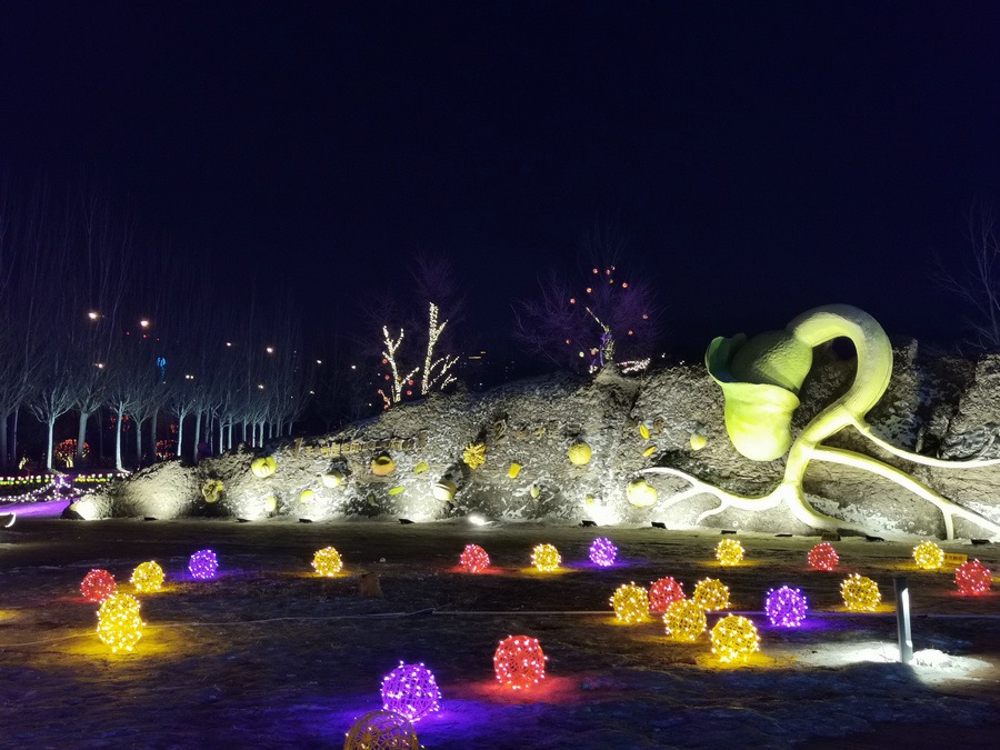 串燈、月球燈、抱樹燈、地插花、氣球燈點(diǎn)綴,搭配動物造型燈,整個小草公園生機(jī)勃勃?!翱茨沁呥€有雪人”,小朋友的歡呼聲打破了夜晚的寂靜。