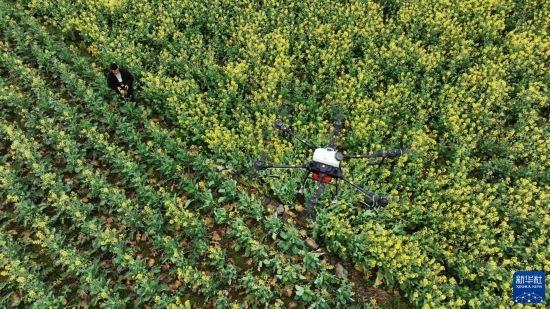 早春時節(jié),貴州省六盤水市六枝特區(qū)木崗鎮(zhèn)16000余畝油菜花競相綻放。當?shù)卮迕穹e極整地、育苗,并利用植保無人機進行春管,一派繁忙景象。