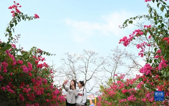 眼下正值海南昌江黎族自治縣木棉花盛開時(shí)節(jié),不少游客前來踏青賞花。