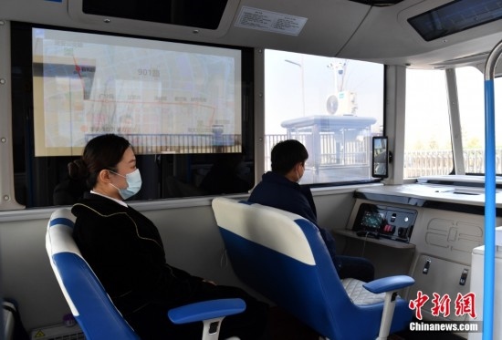 2月22日,智能網(wǎng)聯(lián)巴士901線測(cè)試車輛準(zhǔn)備發(fā)車。雄安新區(qū)的智能網(wǎng)聯(lián)巴士近期正在進(jìn)行投入運(yùn)營(yíng)前的道路測(cè)試,該巴士配備了超高感度攝像頭、超聲波雷達(dá)、激光雷達(dá)、毫米波雷達(dá)等感知設(shè)備,組成了車輛的“眼睛”。車輛可自主識(shí)別紅綠燈、道路提示牌和車道標(biāo)線等,做出跟車、超車、停車等動(dòng)作。中新社記者 韓冰 攝