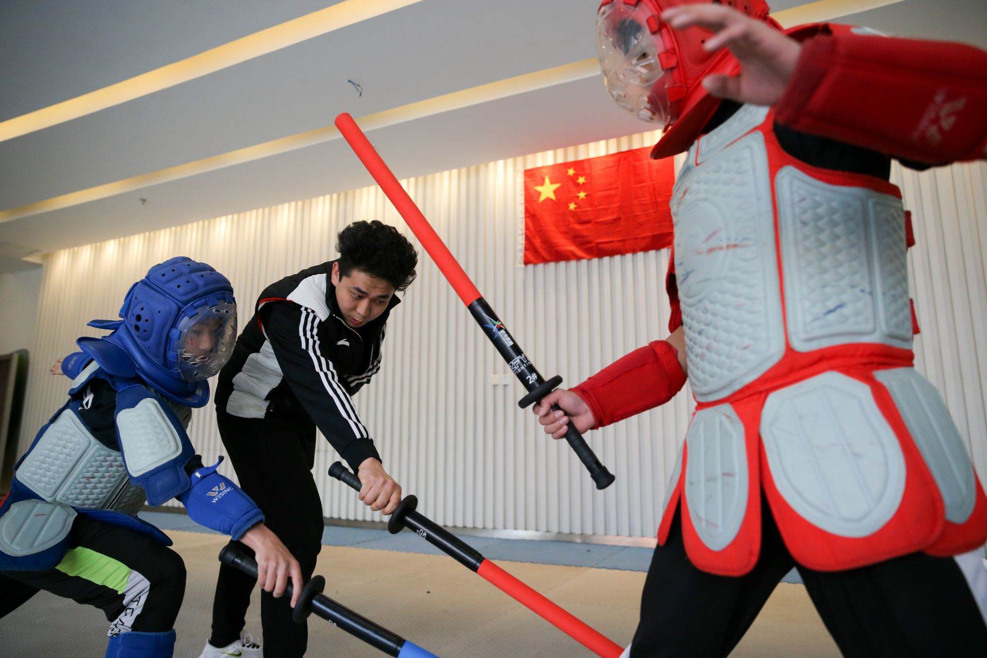 據(jù)了解,2021年,國家體育總局武術(shù)管理中心推出了試行的武術(shù)兵道(短兵)競賽規(guī)則,武術(shù)兵道作為與武術(shù)套路、武術(shù)散打并列的競技武術(shù)重要內(nèi)容在全國普及推廣。同一年,剛剛從北京體育大學武術(shù)專業(yè)畢業(yè)的張宇來到呼和浩特,參與了內(nèi)蒙古第一批武術(shù)兵道運動員的選拔?!耙驗槭切马椖?,大部分隊員都是跨項選拔,主要關(guān)注他們的身體靈活性和臂展?!睆堄钫f。
