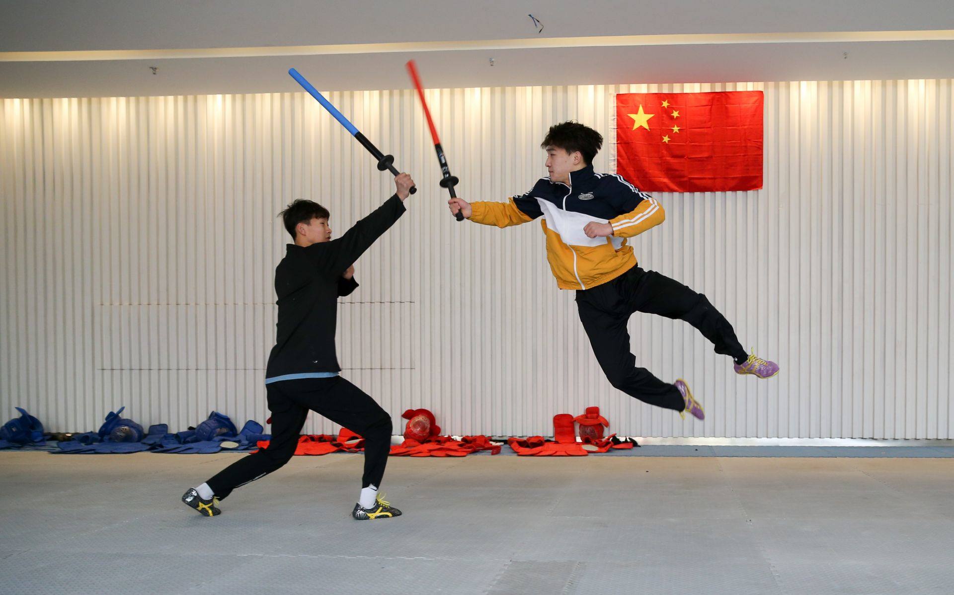 隊員手持一柄海綿包裹的短劍,時而閃躲騰挪,時而沖刺進攻,動作行云流水。一招一式間盡顯力量和速度之美,相互對抗擊打時發(fā)出“啪啪”的聲響更是令人熱血沸騰……如果說哪一項運動能夠滿足人們對俠客的終極幻想,非武術(shù)兵道莫屬。3月21日,為備戰(zhàn)全國武術(shù)兵道錦標賽,內(nèi)蒙古唯一一支武術(shù)兵道隊在呼和浩特市體育運動學校展開訓練。