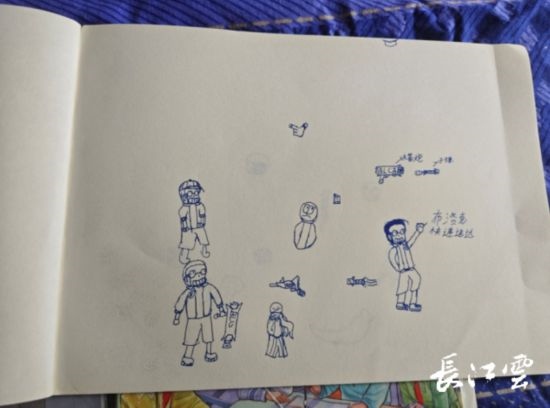 浩浩平時畫的畫,多為單一顏色,很少有彩色畫
