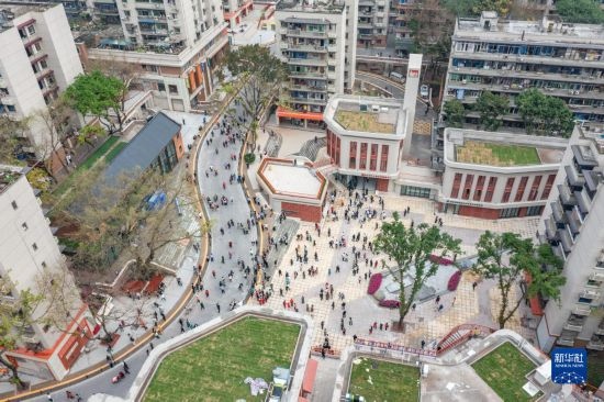 4月28日,重慶市九龍坡區(qū)謝家灣街道民主村片區(qū)城市更新項(xiàng)目(一期)正式竣工亮相,市民游客前來(lái)打卡。