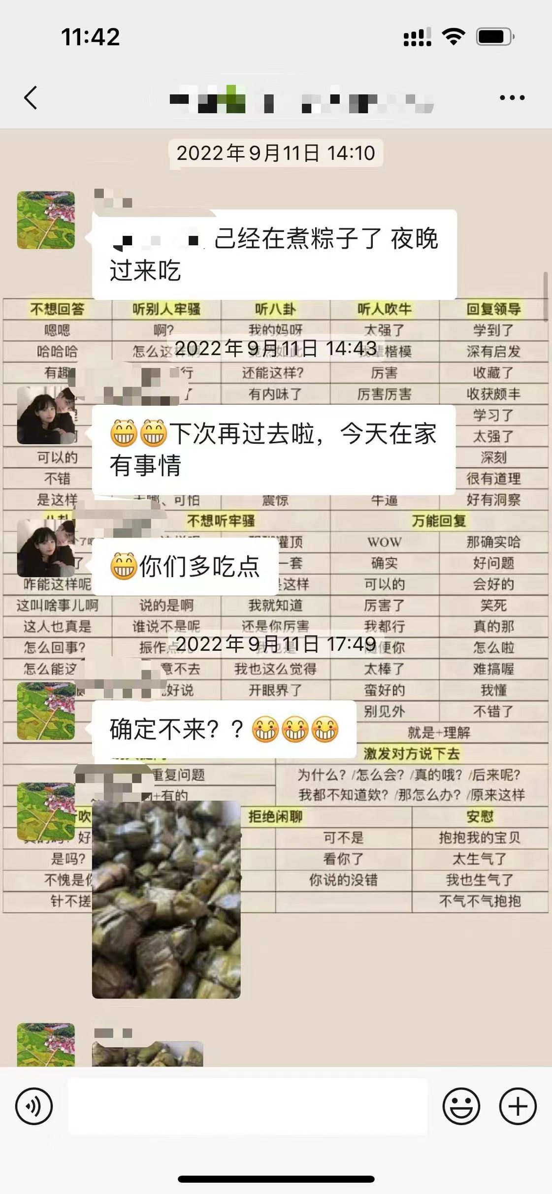 平時(shí)高岑也并不太愿意在群里發(fā)消息。“工作很忙,白天已經(jīng)很奔波勞累了,晚上回家有時(shí)候看到大伯他們發(fā)的消息,都是搶車票、防詐騙,我只能回復(fù)一句‘收到’,也不知道還能聊什么。而且出來上班了,說實(shí)話很少想起老家的親戚們,主動(dòng)聊天不可能,共同話題也很少,我們不回復(fù),長輩們也就很少發(fā)消息了。”