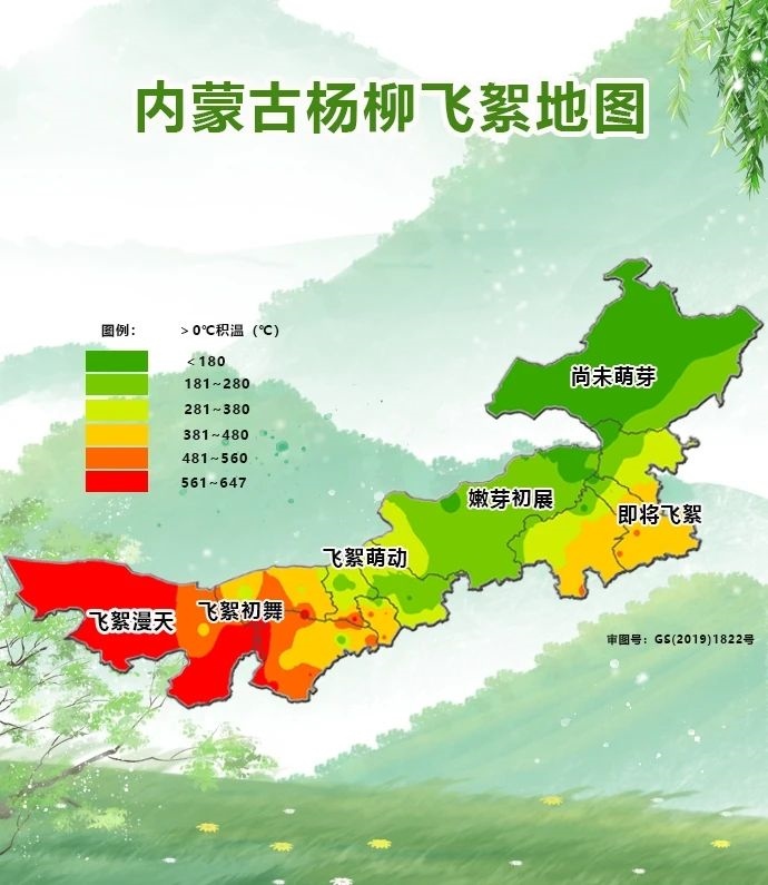 根據(jù)內(nèi)蒙古氣象部門(mén)提供的楊柳飛絮地圖可以看出,目前,阿拉善、烏海地區(qū)已經(jīng)進(jìn)入飛絮漫天階段,巴彥淖爾、鄂爾多斯、呼和浩特、包頭地區(qū)已經(jīng)陸續(xù)進(jìn)入飛絮萌動(dòng)階段和飛絮初舞階段,通遼大部、赤峰東南部地區(qū)即將飛絮,其余地區(qū)還處于嫩芽初展和尚未萌芽階段。