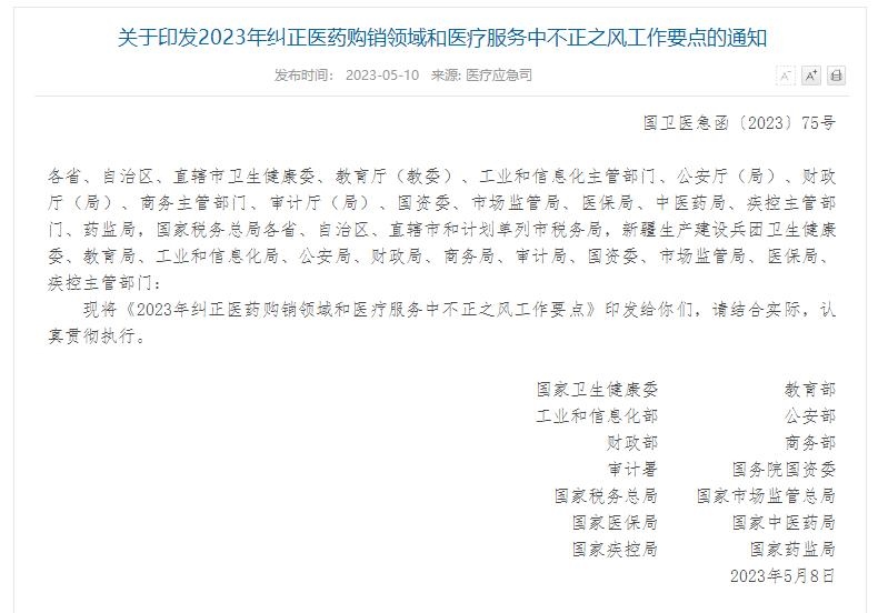 ·14部門聯(lián)合發(fā)文:糾正醫(yī)藥購(gòu)銷領(lǐng)域和醫(yī)療服務(wù)中不正之風(fēng)。
